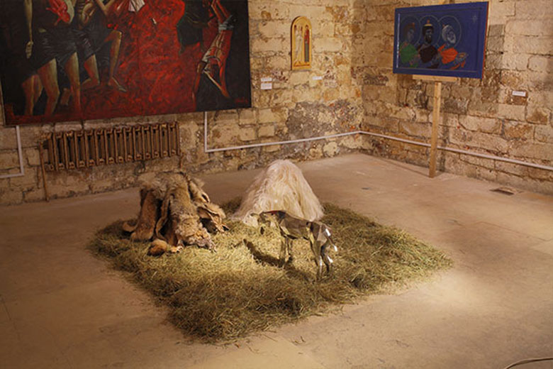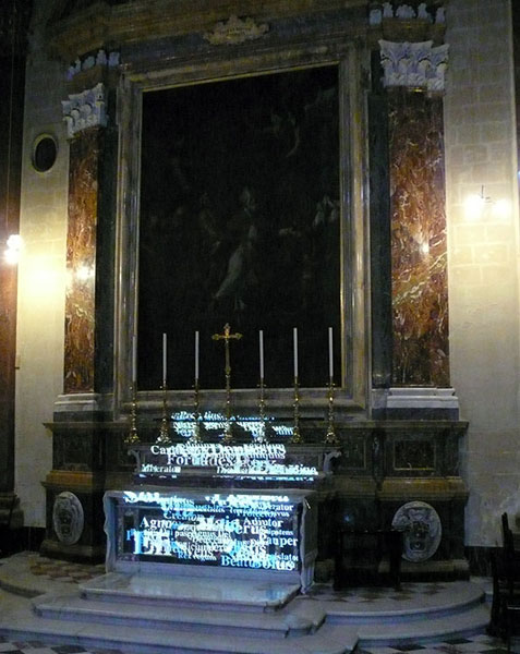 Гор Чахал, «Имя Бога». Мультимедиа, 2003. Вид экспозиции на кафедральном биеннале в Мдине, Мальта, 2015.